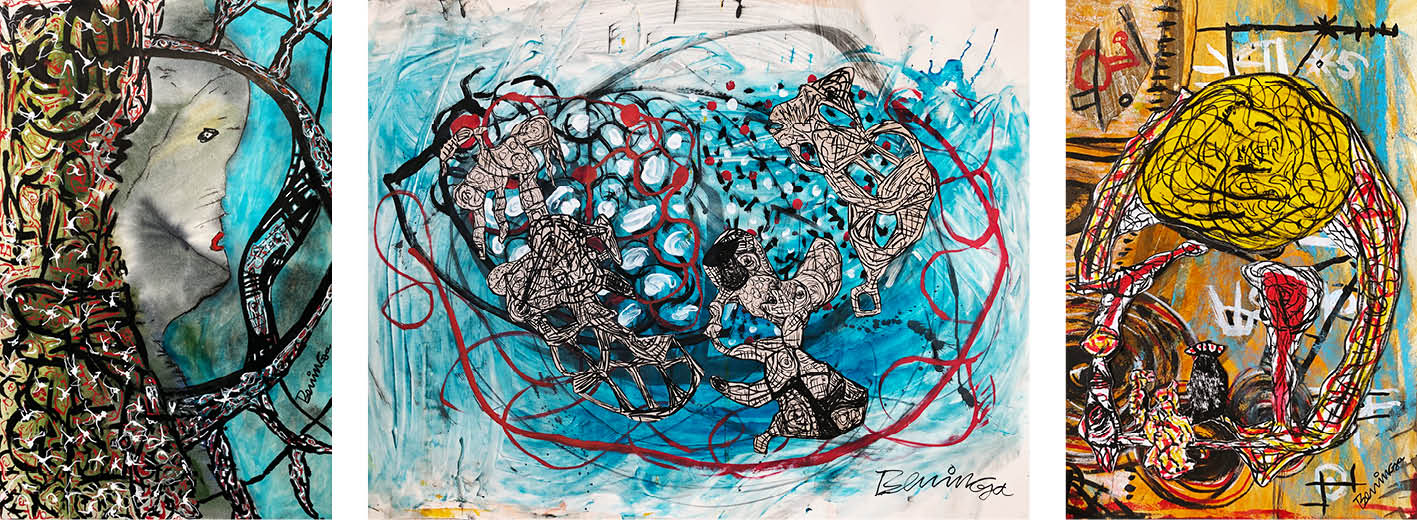 Leo Beninga präsentiert seine Werke zum ersten Mal in Bremen. In der Galerie Roche ist er mit seiner Malweise irgendwo zwischen Surrealismus, Art Brut, CoBrA und abstraktem Expressionismus gut aufgehoben, da hier seit jeher diese Richtungen der klassischen Moderne Beachtung gefunden haben.